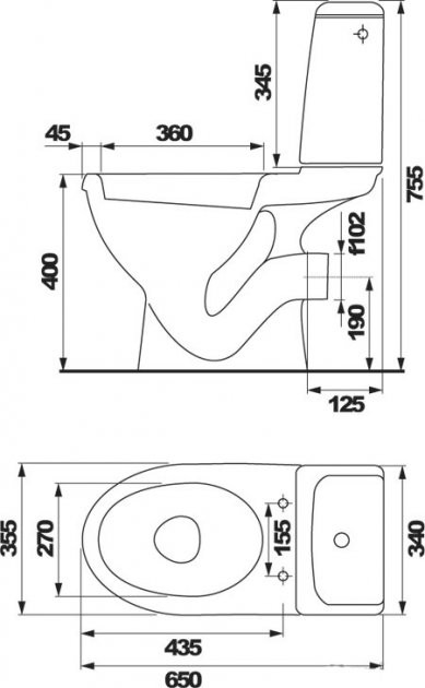 Габарити унітазу (ВхШхГ) : 355x650x755