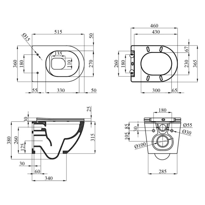 Комплектація Унітаз, кріплення, сидіння для унітазу.