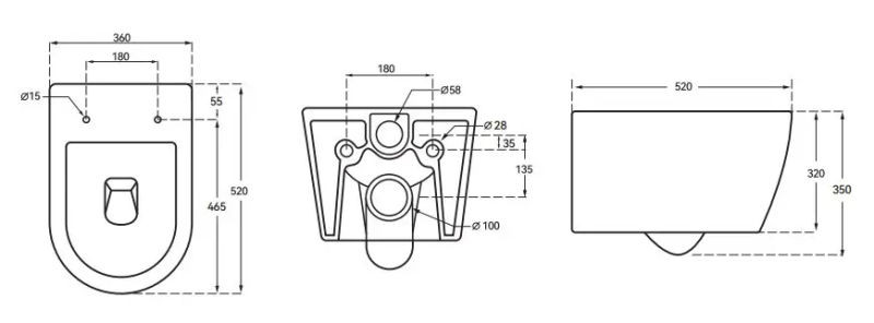 Опис Унітаз підвісний Mixxus Ellipse-0306-T3 520x360x365 Tornado 3.0 (MI6704)