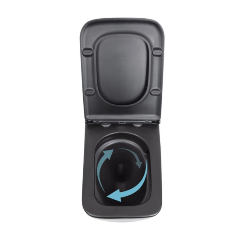 Підвісний унітаз Qtap Gemini безободковий із сидінням QT2533076EUQMB має сучасний дизайн, який підійде до будь-якого інтер’єр ванної кімнати. Виріб має унікальну безшумну технологію змиву Ultra Quiet. Сидіння з функцією soft close опускається плавно та безшумно. Виріб виконаний з кераміки у чорному кольорі та покритий емаллю для захисту від вологи. Унітаз без обідка, тому зайвий бруд не накопичується і виріб швидко миється. Завдяки підвісній конструкції прибирання не завдасть зайвого клопоту.
