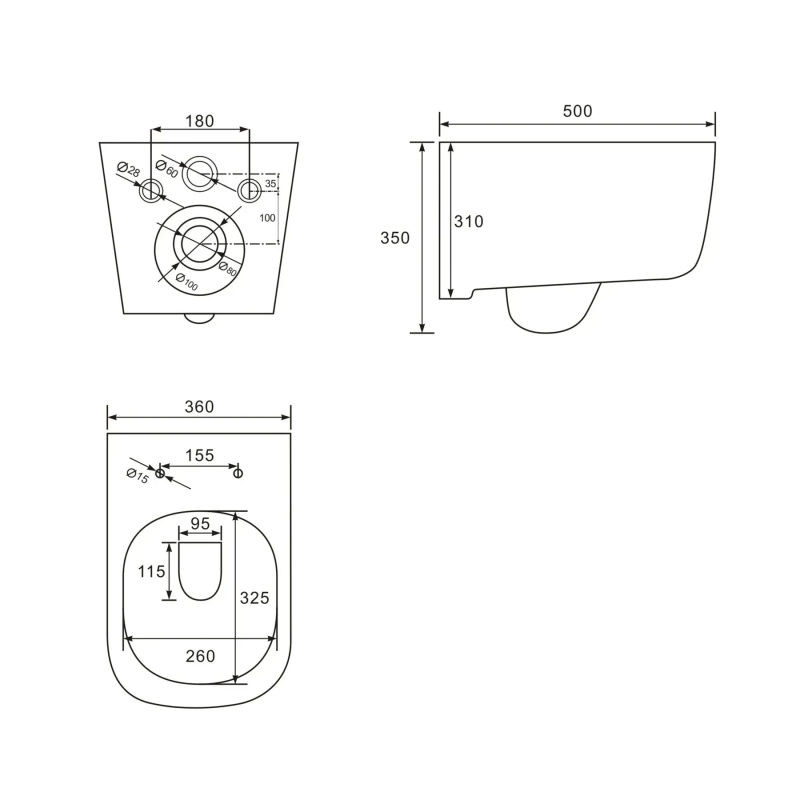 Комплект поставки: чаша підвісного унітазу, сидіння