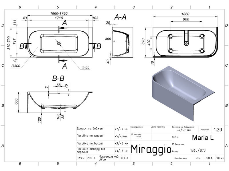 Ви можете купити Ванна Miraggio Maria L глянцева в Києві в інтернет магазині сантехніки Lexon за низькою ціною або оформити доставку по Україні: Харків, Одеса, Дніпро, Запоріжжя, Львів, Кривий Ріг, Миколаїв, Маріуполь, Вінниця, Херсон, Полтава, Чернігів, Черкаси, Житомир, Суми, Хмельницький , Чернівці, Рівне, Кропивницький, Івано-Франківськ, Кременчук, Тернопіль, Луцьк, Біла Церква, Краматорськ, Мелітополь, Нікополь, Слов'янськ, Ужгород, Бердянськ, Бровари та інші міста України.