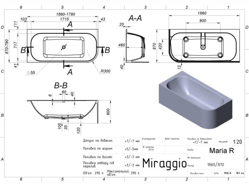 Ви можете купити Ванна Miraggio Maria R глянцева в Києві в інтернет магазині сантехніки Lexon за низькою ціною або оформити доставку по Україні: Харків, Одеса, Дніпро, Запоріжжя, Львів, Кривий Ріг, Миколаїв, Маріуполь, Вінниця, Херсон, Полтава, Чернігів, Черкаси, Житомир, Суми, Хмельницький , Чернівці, Рівне, Кропивницький, Івано-Франківськ, Кременчук, Тернопіль, Луцьк, Біла Церква, Краматорськ, Мелітополь, Нікополь, Слов'янськ, Ужгород, Бердянськ, Бровари та інші міста України.
