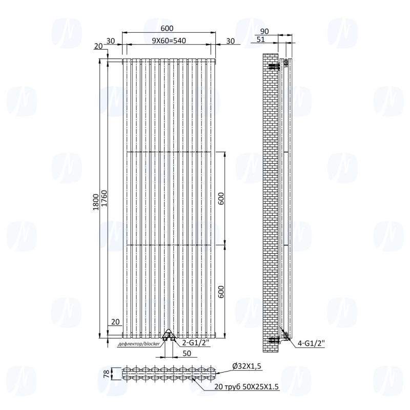 Вертикальний радіатор Navin Ellipse double 600x1800-10 (50мм), anticor, білий 02-145133-6018 Відгуки