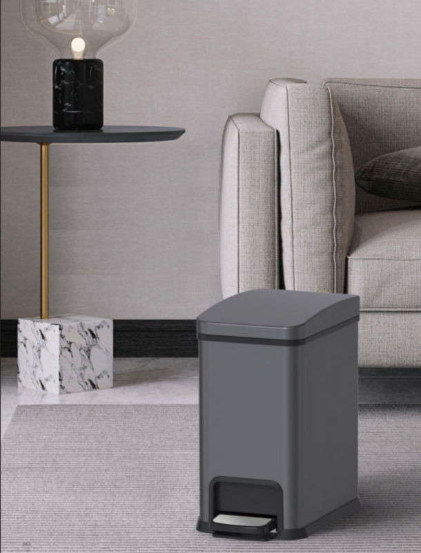 Відро для сміття з педаллю Koer TC-010108-07 об'ємом 8 л — це вдале поєднання функціональності та сучасного дизайну у стильному графітовому кольорі. Прямокутна форма й матова поверхня чудово доповнюють інтер'єри в стилі мінімалізм, модерн чи хай-тек — від кухні до ванної або вітальні.