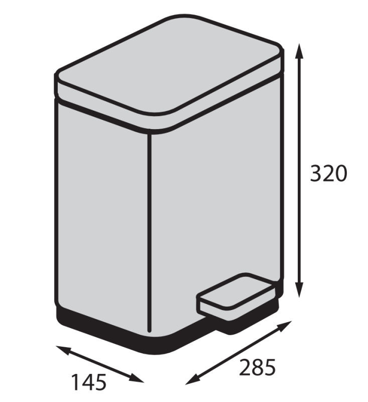 Корпус виготовлений із міцної нержавіючої сталі з брашованою поверхнею, стійкою до забруднень і відбитків пальців. Модель оснащена педаллю для зручного відкривання, внутрішнім пластиковим баком та системою м’якого закривання кришки, що забезпечує комфортне та безшумне використання.