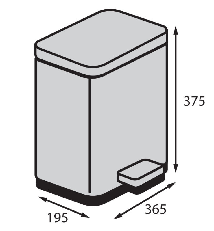 Корпус із нержавіючої сталі має покриття, що захищає від відбитків пальців. Кришка закривається плавно й безшумно, а механізм відкривання педаллю дозволяє користуватись без дотику рук. Внутрішнє пластикове відро легко дістається для очищення.