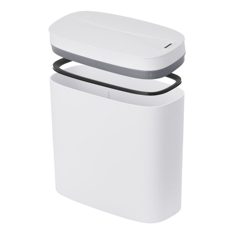 Біле сенсорне відро для сміття Mixxus Flat-TC0109 — ідеальне рішення для ванної кімнати чи офісу. Завдяки компактним розмірам і акуратній овальній формі воно органічно поєднує практичність та естетику, допомагаючи підтримувати чистоту без зайвих зусиль.