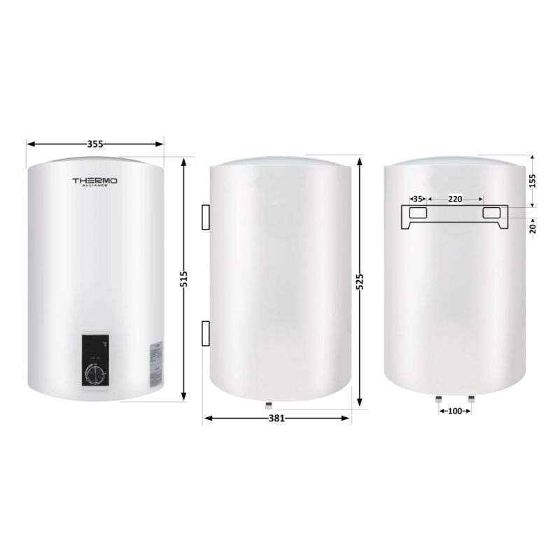 Водонагрівач Thermo Alliance 30 л, сухий ТЕН 2х0,8 кВт D30V16J1(D)K призначений для облаштування побутового гарячого водопостачання. Нагрів води забезпечують два надійні сухі нагрівальні елементи потужністю по 800 Вт. Усередині поверхня бака захищають від корозії магнієвий анод, емалеве покриття. Регулювати роботу бойлера зручно, на панелі керування розташована поворотна ручка та дисплей індикації температури нагріву. Товщина внутрішнього бака – 2 мм.