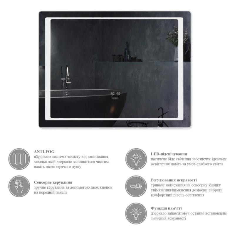 Управління здійснюється двома сенсорними кнопками на передній частині дзеркала.