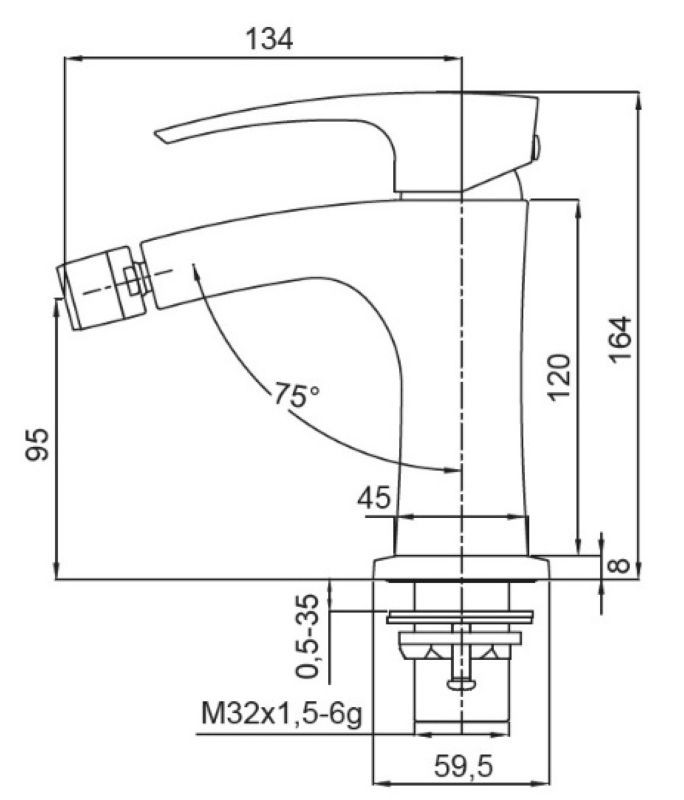 • Модель: KB-20007-04 • Тип виробу: Змішувач для біде • Матеріал корпусу: Латунь • Монтаж: На виріб • Тип підводки: Гнучка • Тип приєднання: Гайка • Запірний елемент: Картридж • Діаметр картриджа (мм): 35 • Довжина виливу (мм): 134 • Висота до виливу (мм): 95 • Висота змішувача (мм): 164 • Довжина гнучкої підводки (см): 60 • Робочий тиск (бар): 1-5 • Максимальний тиск (бар): 10,00 • Гнучка підводка в комплекті: Так