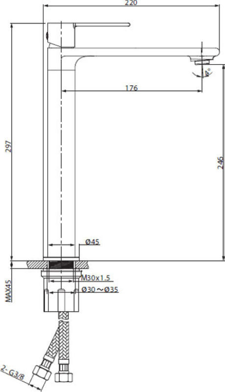 Високий змішувач VIRGO призначений для установки з умивальником на стільницю та оснащений: