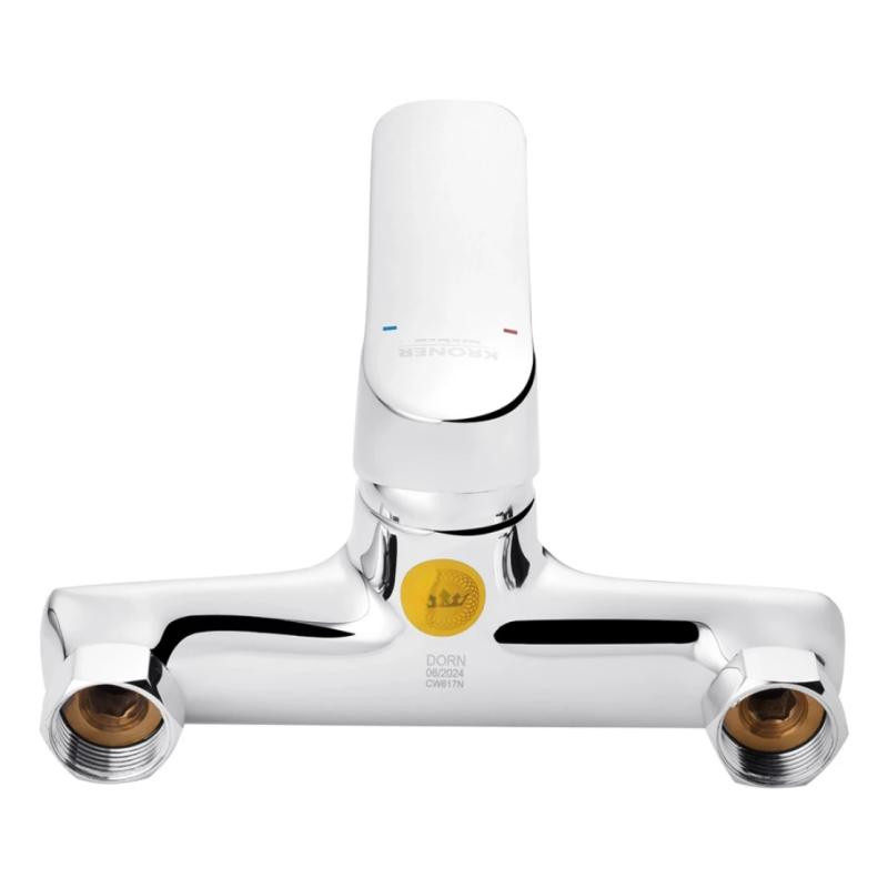 Змішувач має одноважільне керування, яке дозволяє легко та зручно регулювати потік води. Завдяки настінному монтажу та ексцентриковому типу кріплення, установка цього змішувача проходить швидко та без зайвих труднощів. Литий тип виливу додає естетики, а хромована глянцева поверхня забезпечує йому елегантний вигляд.