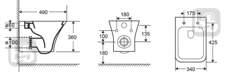 LOBO унітаз підвісний чаша Rimless прихований монтаж розміри (ГхШхВ): 490 * 340 * 360мм Колір білий антибактеріальне покриття кераміки СeraPro сидіння дюропласт Slim Soft-Close кріплення металеві швидкознімні