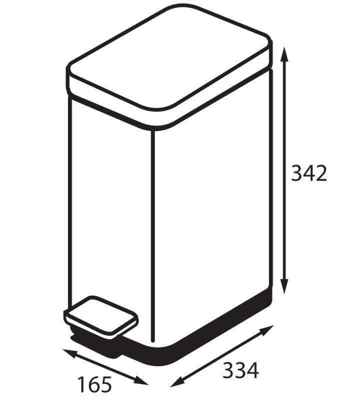Корпус изготовлен из прочной нержавеющей стали, внутренняя часть — из полипропилена. Крышка открывается при помощи металлической педали и закрывается мягко и бесшумно. Обработка поверхности защищает от отпечатков пальцев, а нижняя часть ведра оснащена уплотнителем для дополнительной устойчивости.