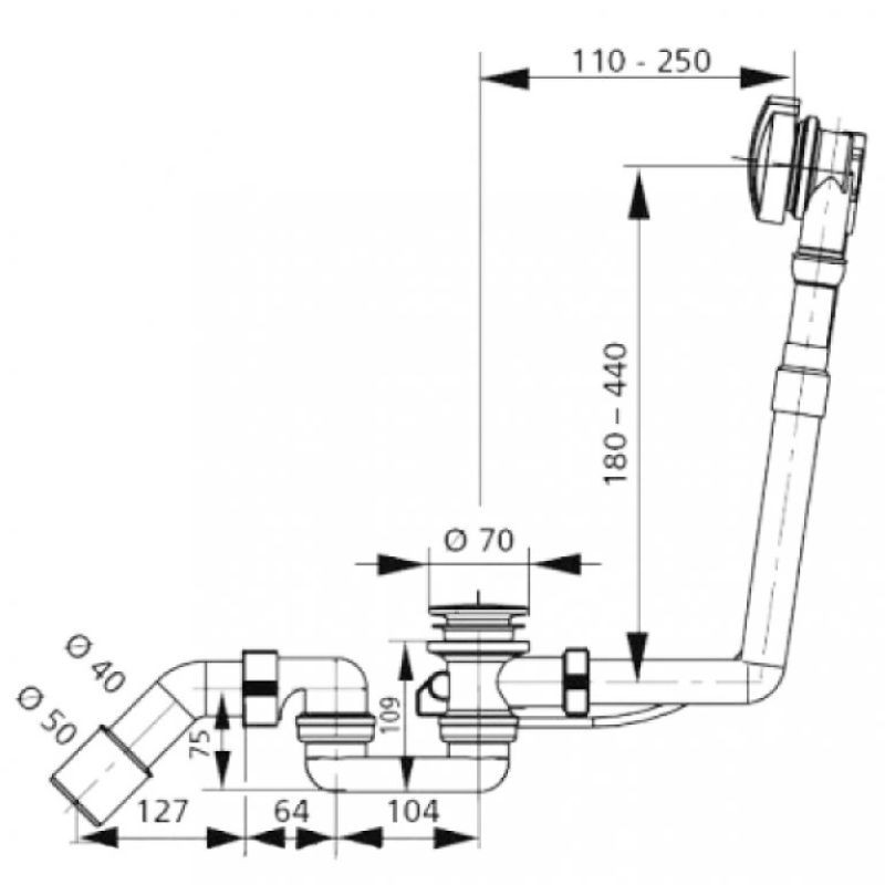 Сифон для ванны Sanit (35.064.00.0000) выполнен из пластика, со сливным отверстием Ø 70 мм. В комплекте с декоративной крышкой с хромированным покрытием, съемной насадкой для сифона, плоской прокладкой, выходом с регулируемым шаровым шарниром, отводом Ø 40/50 мм.