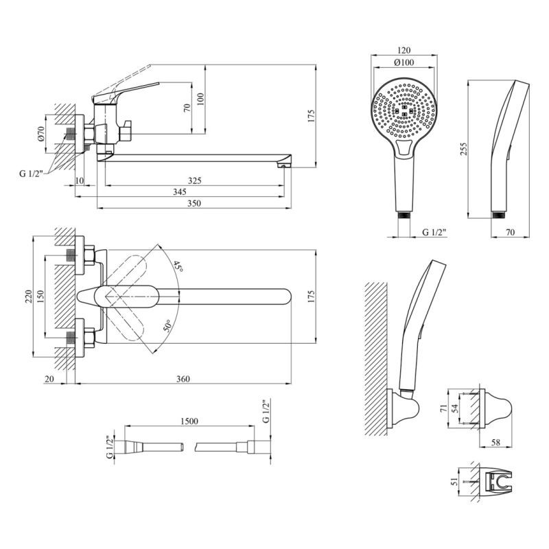 Подключение душа: 1/2”