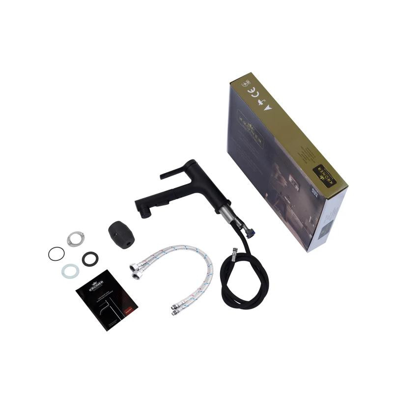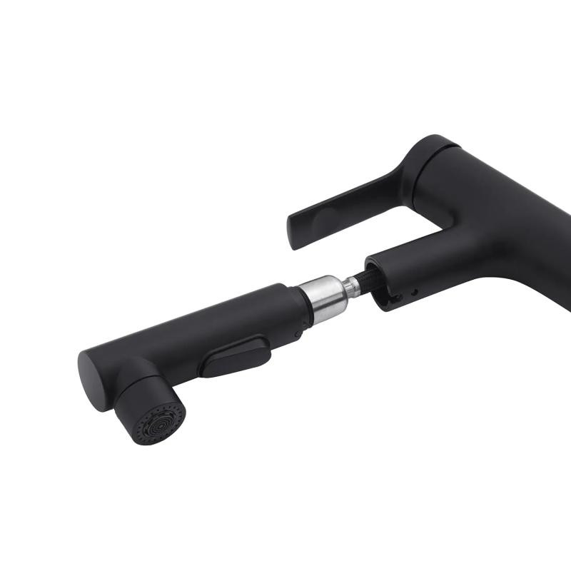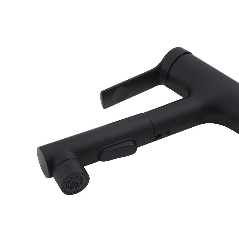З його чорним матовим кольором цей змішувач додає елегантності вашій ванній кімнаті. Висувний поворотний вилив дозволяє легко маніпулювати напрямом води, роблячи його зручним у використанні.