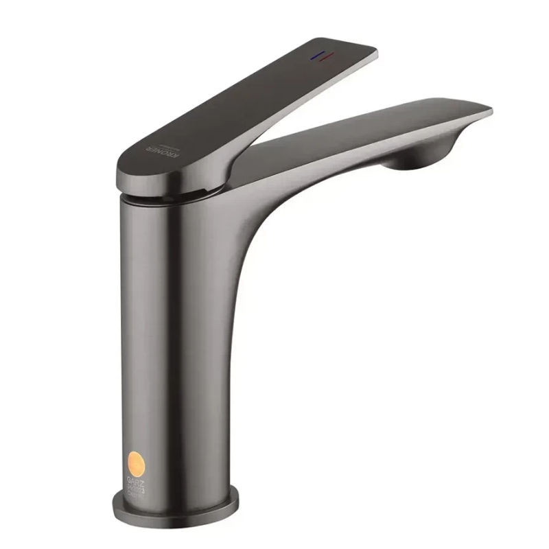 Смеситель имеет элегантную глянцевую поверхность, которая не только добавляет современный блеск вашей ванной комнате, но и облегчает уход за изделием. Его цвет в графитовой гамме придает интерьеру особый акцент.