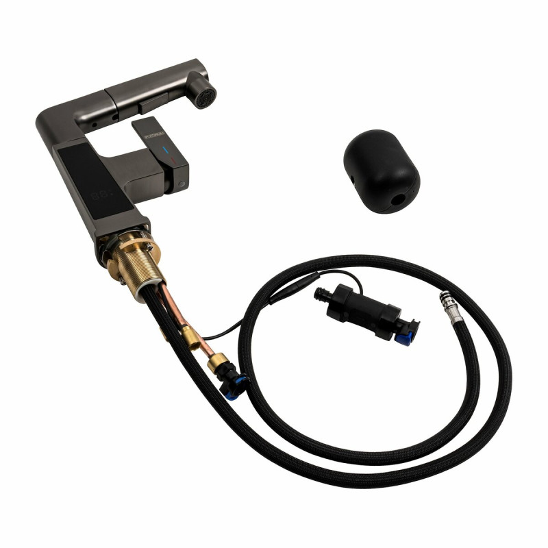 Особенностью этого умывальника является выдвижной тип излива, который позволяет регулировать степень направленности воды удобным для вас способом. Вы будете удивлены не только его стильным дизайном, но и практичностью и удобством в использовании.