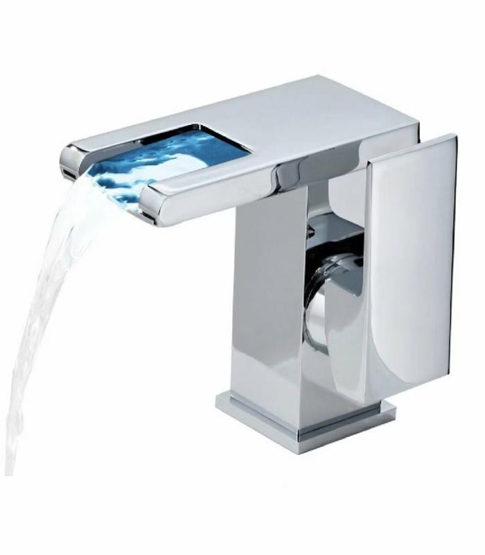 Дизайнерский смеситель-водопад из нержавеющей стали не только поражает своим современным видом, но и обеспечивает удобное и безопасное пользование благодаря трехцветной LED-подсветке, изменяющейся в соответствии с температурой воды: